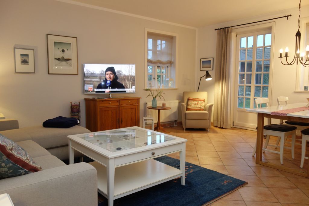 Die Ferienwohnung verfügt über insgesamt drei Zimmer, darunter zwei einladende Schlafzimmer (Doppelbett 2*90*200 und 2 getrennten Betten jeweils 90*200), die durch ihre bodenständige Einrichtung und den hochwertigen Fliesenboden eine gemütliche Atmosphäre schaffen. Schlafmöglichkeiten für bis zu vier Personen stehen zur Verfügung, ideal für Familien oder kleine Gruppen. Das großzügige Wohnzimmer ist mit einer bequemen Sofaecke und einem Essbereich ausgestattet, welcher zum Verweilen einlädt. Zusätzlich sorgt der offene Küchenbereich für ein geselliges Ambiente, in dem Sie als Familie oder Freunde zusammen Kochen und Essen können.
