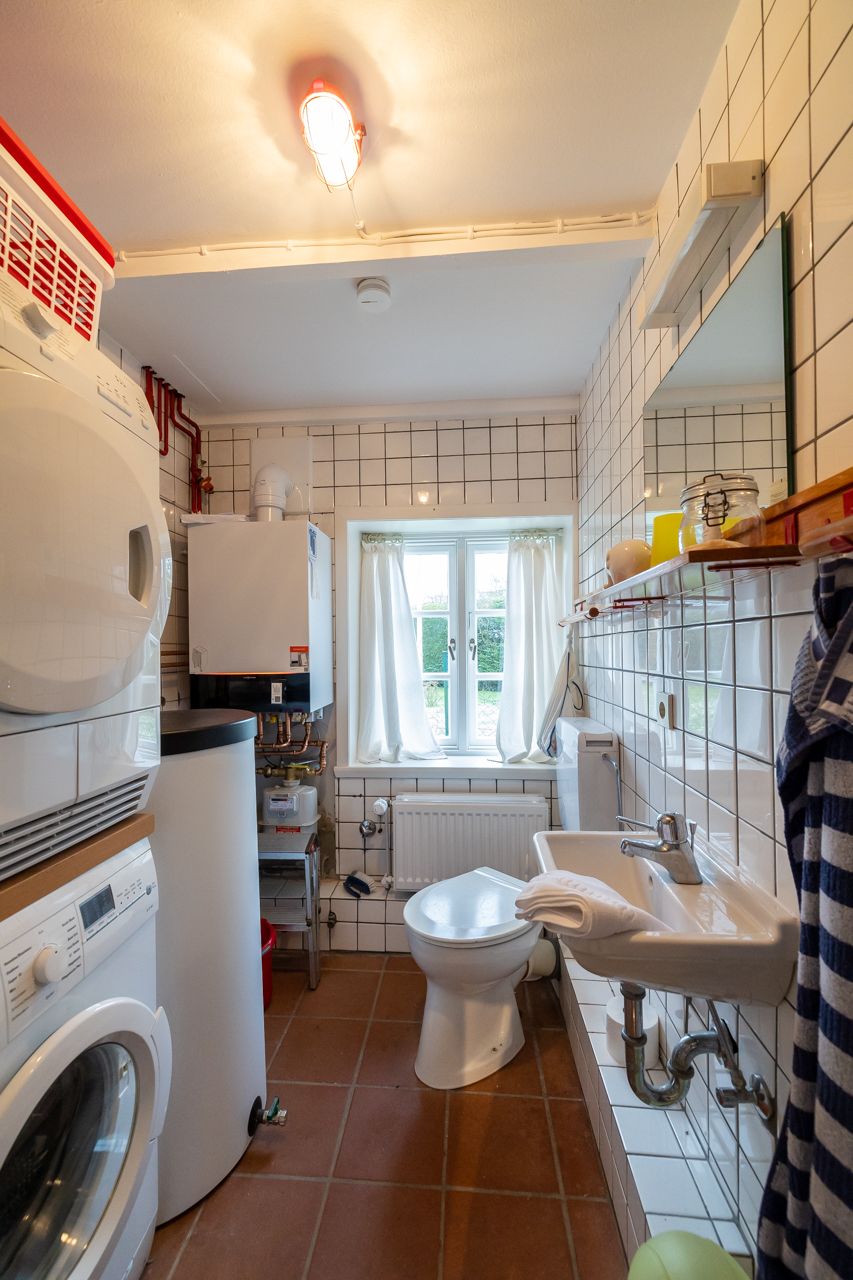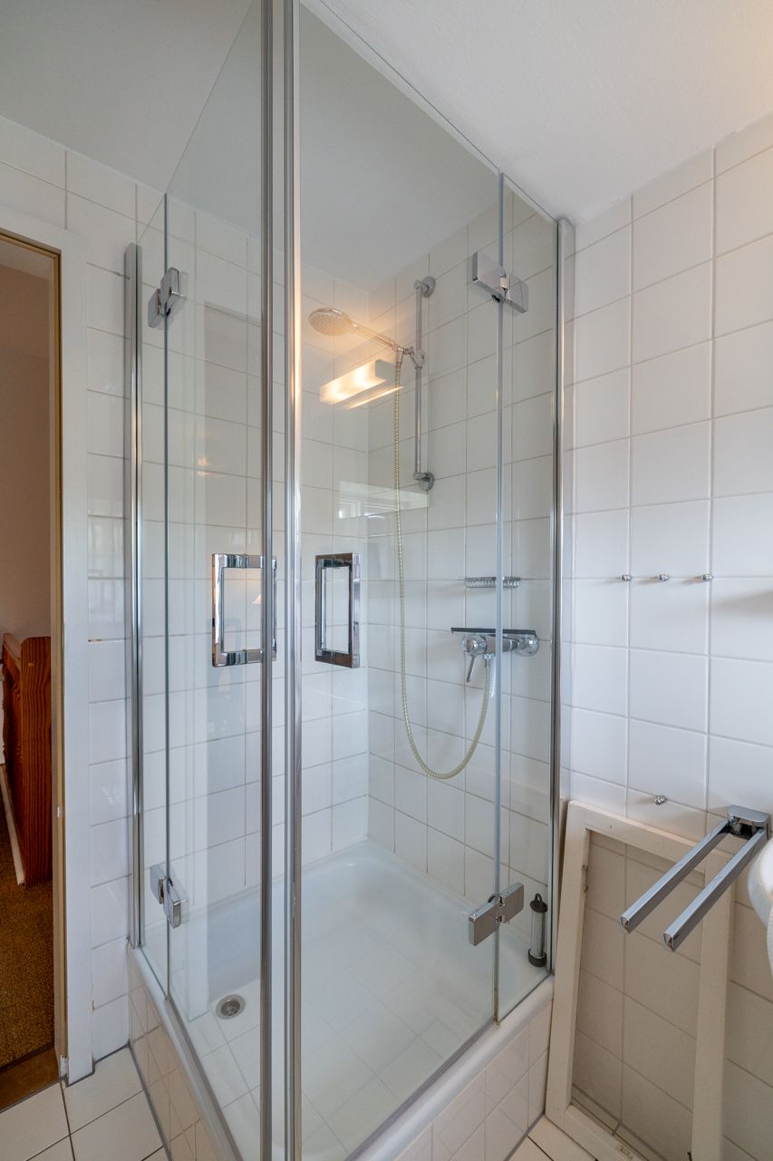 Das Badezimmer im Ferienhaus ist mit einer Dusche ausgestattet, die zusätzlich eine Wanne bietet – perfekt zum Entspannen nach einem ereignisreichen Tag. Ein Gäste-WC sorgt für zusätzlichen Komfort. Zu den weiteren Annehmlichkeiten zählen eine Gemeinschafts-Waschmaschine und ein Trockner, die Ihnen während Ihres Aufenthalts zur Verfügung stehen.