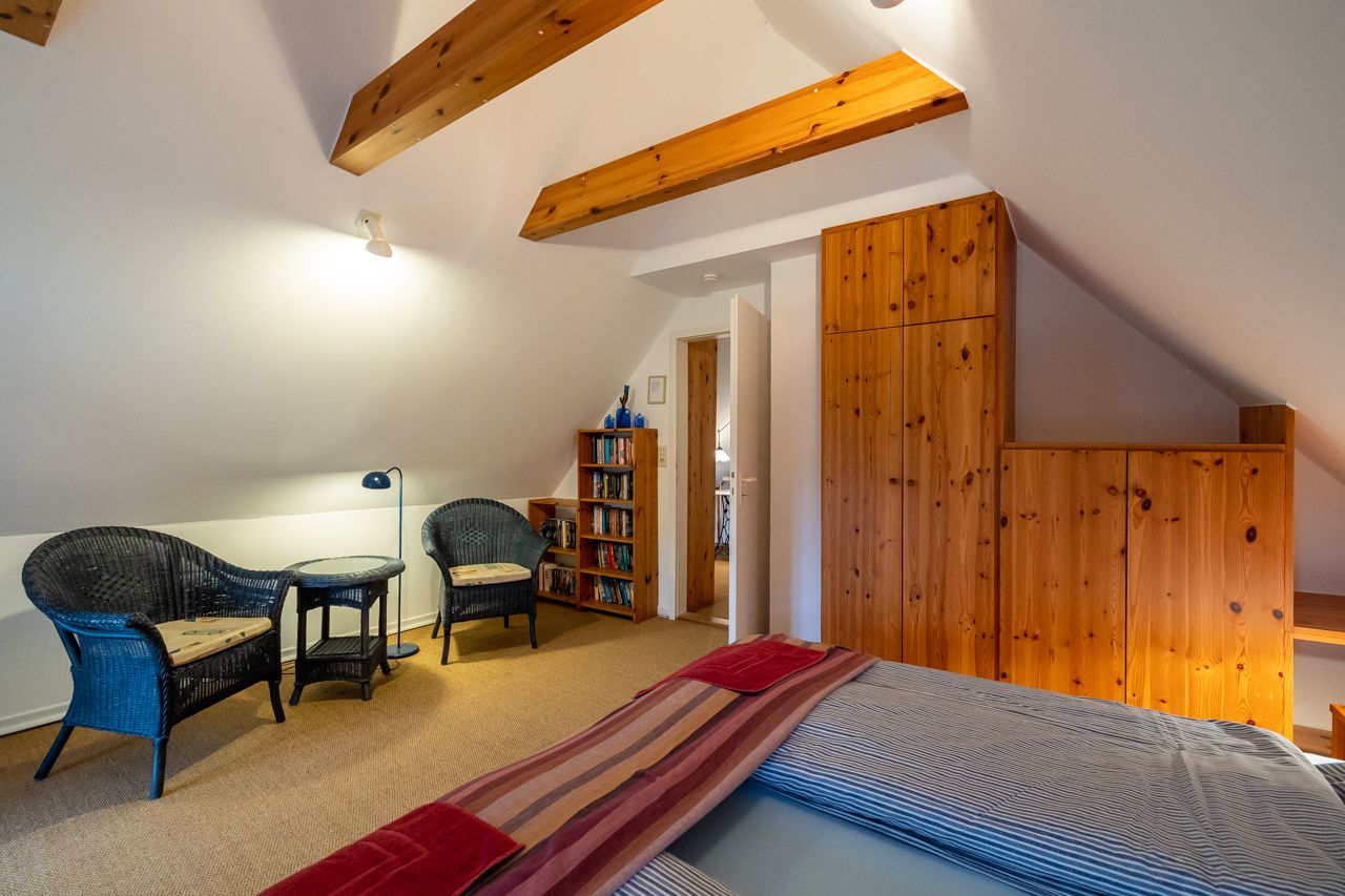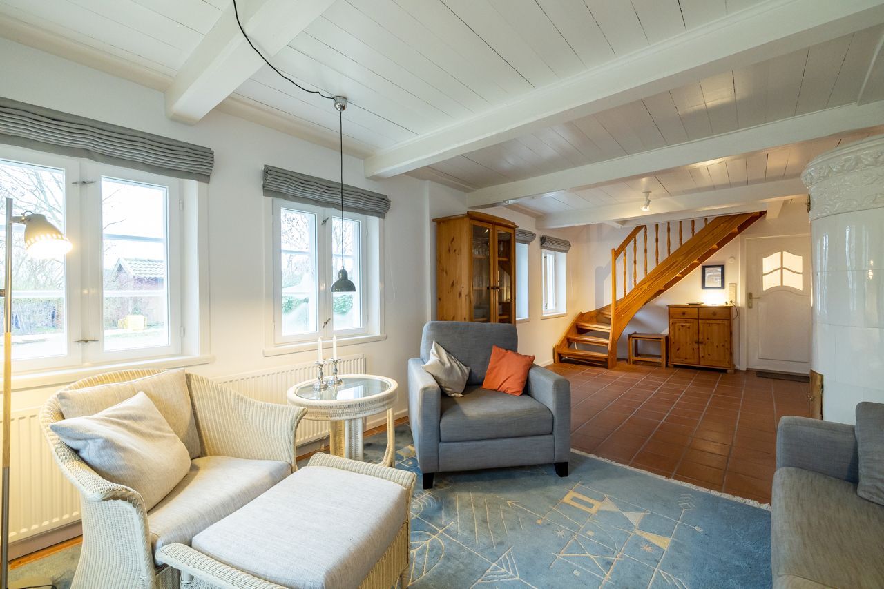 Der Außenbereich des Ferienhauses ist ein wahres Highlight. Hier erwarten Sie eine private Terrasse sowie ein gepflegter Garten mit Gartenmöbeln, Sonnenliegen und einem Strandkorb, wo Sie den Blick ins Grüne genießen können. Für Familien mit Kindern bietet die Liegewiese ausreichend Platz zum Spielen und Toben. Nach einem erlebnisreichen Tag am Strand können Sie sich gemütlich im Garten entspannen und die Seele baumeln lassen.