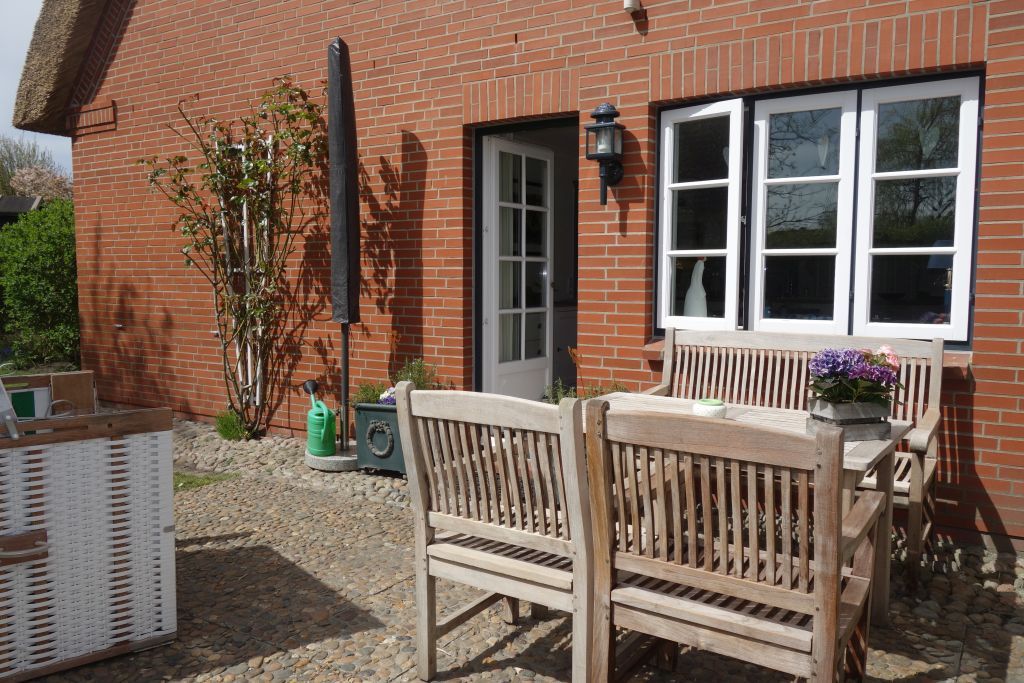 Ein besonderes Highlight der Ferienwohnung Sonnenblume ist die liebevoll gestaltete Terrasse, auf der Sie bei gutem Wetter entspannen können. Der Garten bietet nicht nur einen herrlichen Blick, sondern auch verschiedene Spielmöglichkeiten für die kleinen Gäste. Hier stehen Ihnen ein Sandkasten, eine Schaukel und Gartenmöbel zur Verfügung. Ein Strandkorb und ein Sonnenschirm laden dazu ein, die Sonnenstrahlen in Ruhe zu genießen.