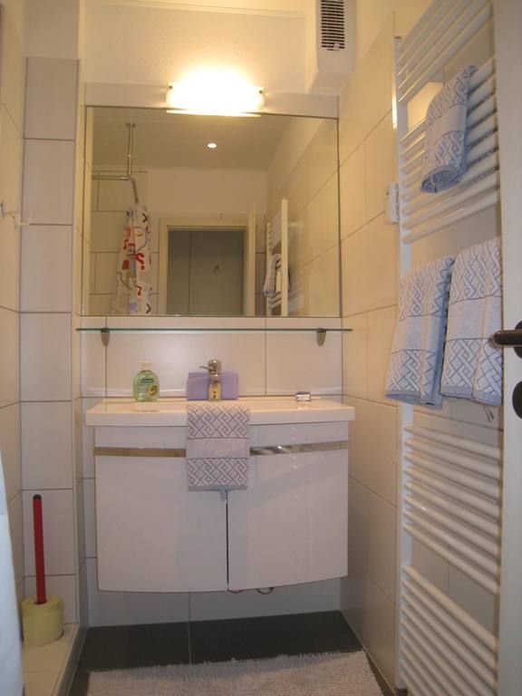 Im Badezimmer finden Sie eine bodengleiche Dusche, ein Waschbecken mit Spiegel, WC und einen Haartrockner. Ein Bügeleisen, Bügelbrett sowie ein Wäscheständer stehen ebenfalls zur Verfügung, um Ihren Aufenthalt so angenehm wie möglich zu gestalten.