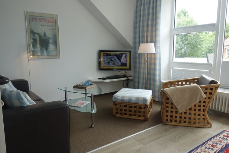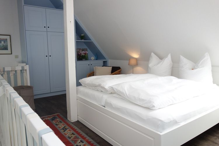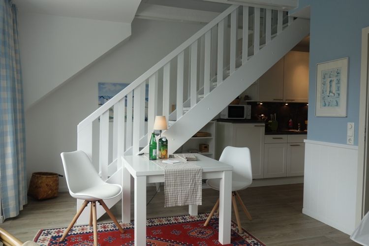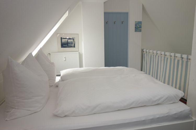 Auf insgesamt zwei Zimmern finden bis zu zwei Personen komfortable Schlafmöglichkeiten. Das Schlafzimmer befindet sich in der offen gestalten Galerie der Wohnung und ist mit einem Doppelbett (2*90*200 cm) ausgestattet für erholsame Nächte. Im modernen Wohnzimmer laden eine gemütliche Sofaecke und ein komfortabler Sessel zum Verweilen ein. Von dort gelangen Sie direkt auf den sonnigen Balkon, der mit Gartenmöbeln und einem Sonnenschirm ausgestattet ist – ideal, um die frische Nordseeluft zu genießen und den Tag entspannt ausklingen zu lassen.