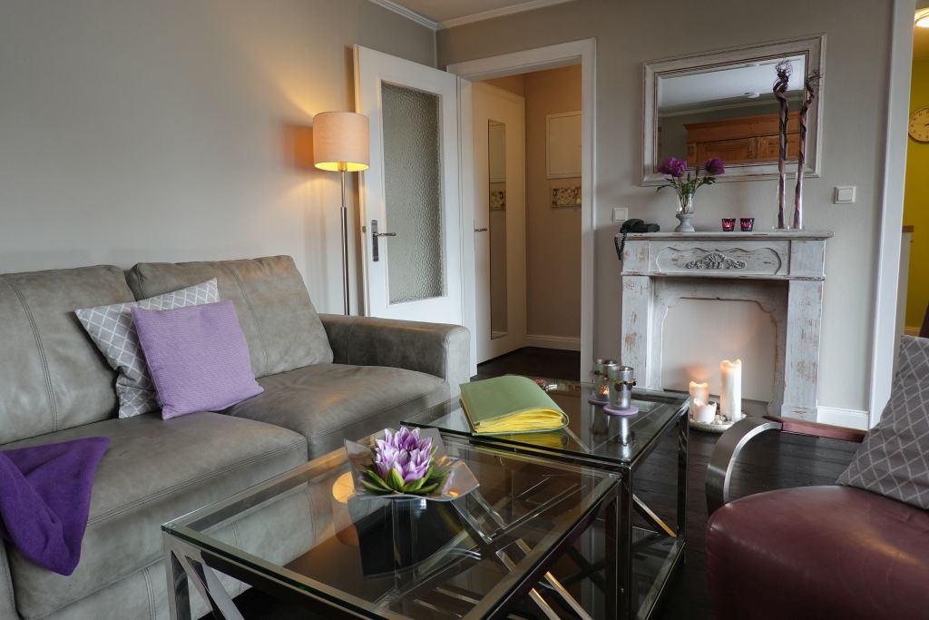 Mit einem Schlafzimmer und weiteren Schlafmöglichkeiten im Wohnbereich ist die Ferienwohnung bestens geeignet für Paare sowie kleine Familien. Bis zu zwei Personen finden hier Platz, wobei Kinder jederzeit willkommen sind. Das moderne, einladende Wohnzimmer ist mit einem komfortablen Sofa und einem Sessel ausgestattet und bietet zudem einen Essbereich mit einem Tisch und ausreichend Platz für gesellige Abende. Die Sicherheitsmerkmale, darunter Rauchmelder und Sichtschutz für alle Fenster, sorgen für Ihr Wohlbefinden.