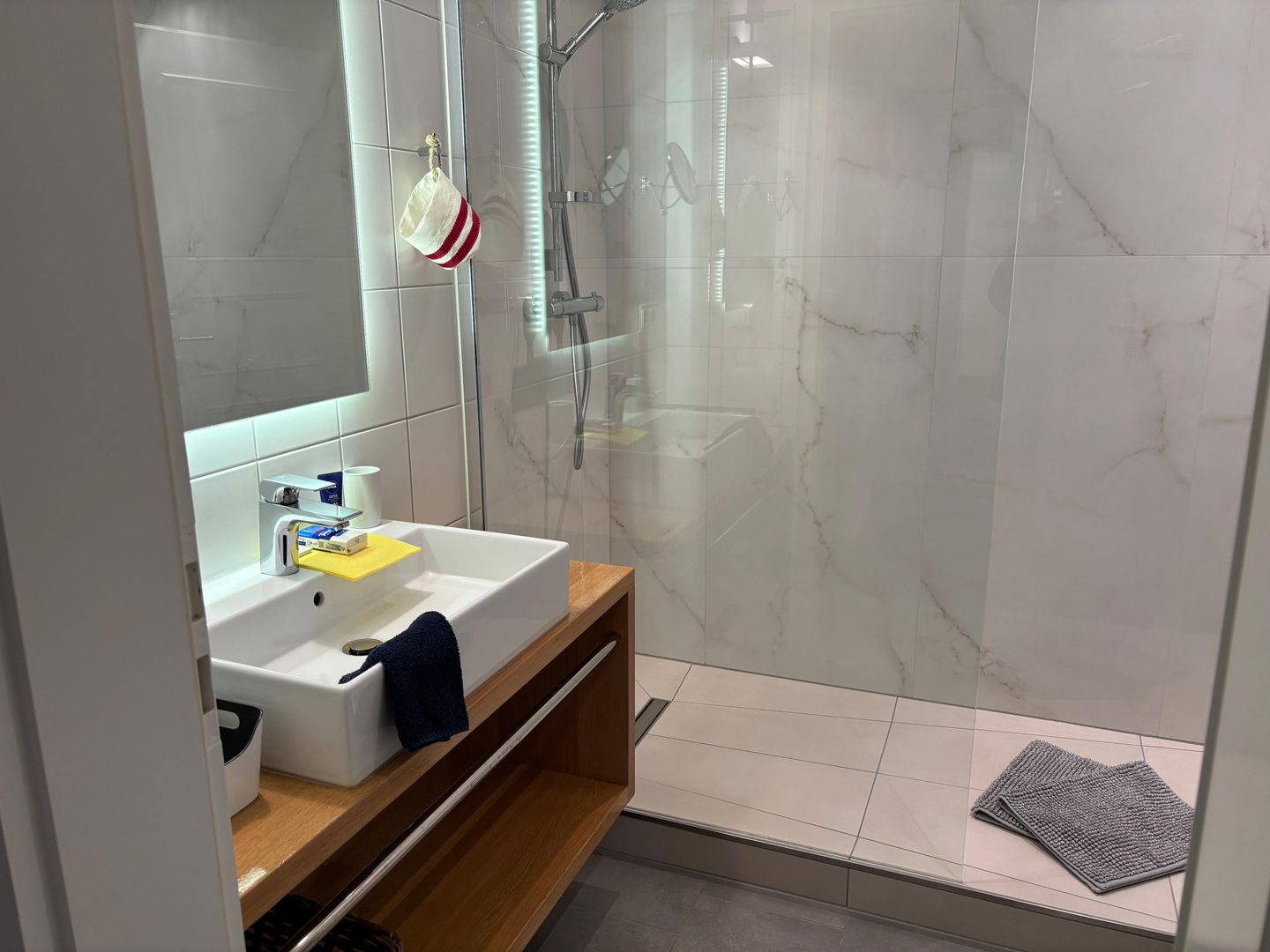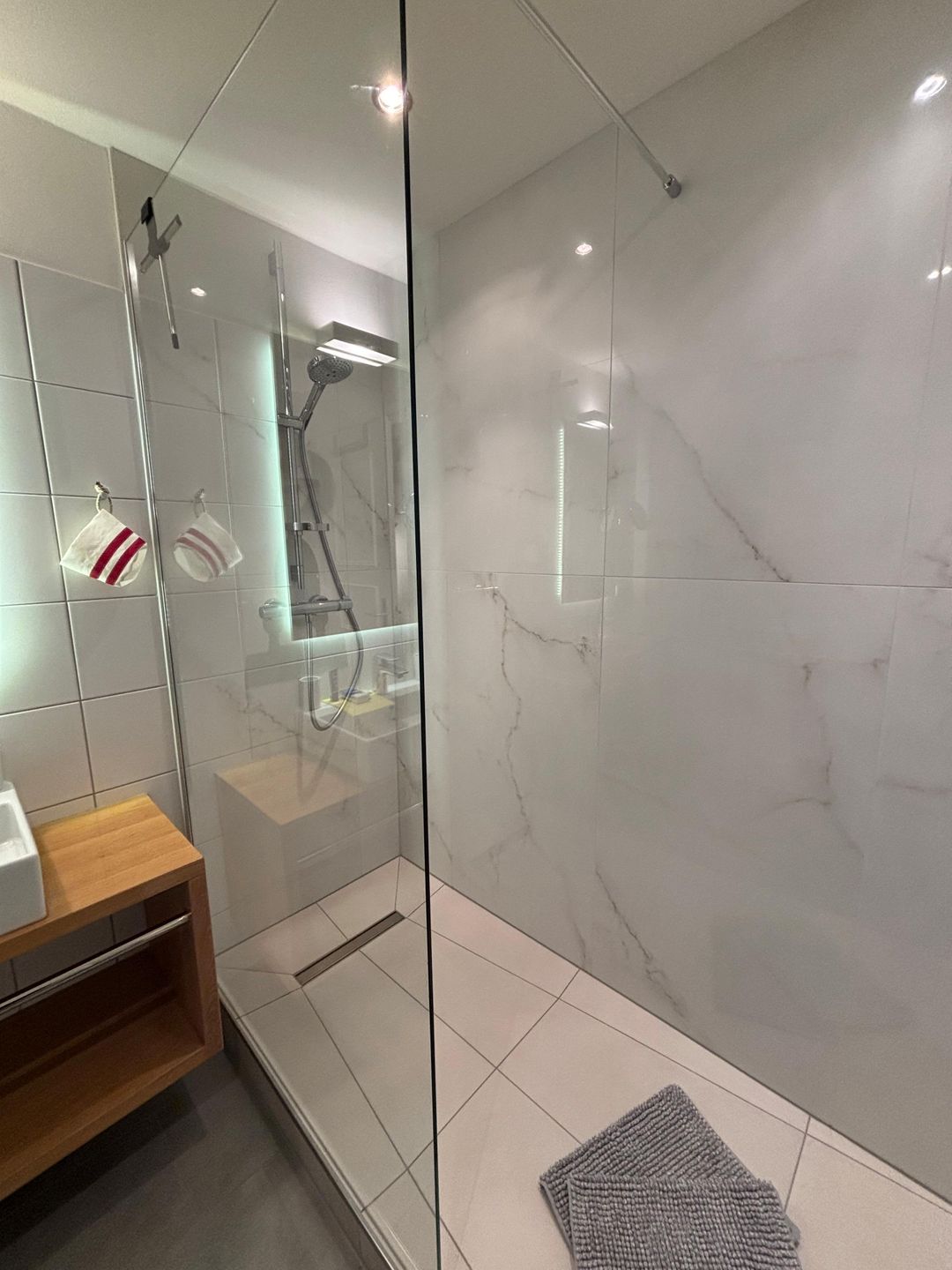 Die Wohnung befindet sich im Erdgeschoss und verfügt über eine eigene Terrasse, auf der Sie sonnige Stunden verbringen oder den Tag entspannt ausklingen lassen können. Die großzügige Raumaufteilung schafft ein offenes und angenehmes Wohngefühl, das zum Verweilen einlädt. Die moderne, hochwertige Ausstattung wurde mit viel Liebe zum Detail ausgewählt und verbindet stilvolles Design mit Funktionalität.