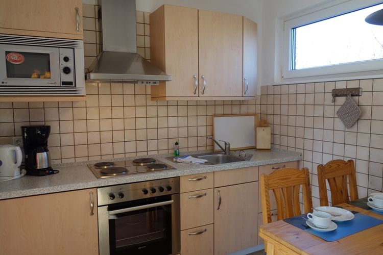 Ihr neues Urlaubsdomizil empfängt Sie mit einer modernen und doch gemütlichen Einrichtung. Die offene Küche, die zum Wohnzimmer übergeht, ist optimal ausgestattet. Sie finden hier einen Herd mit Cerankochfeld, einen Backofen, eine Mikrowelle sowie eine Spülmaschine. Auch eine Kaffeemaschine, Toaster und Wasserkocher sind vorhanden, damit Sie sich jederzeit kulinarisch verwöhnen können. Der Essbereich mit Esstisch lädt dazu ein, gemütliche gemeinsame Mahlzeiten zu genießen.
