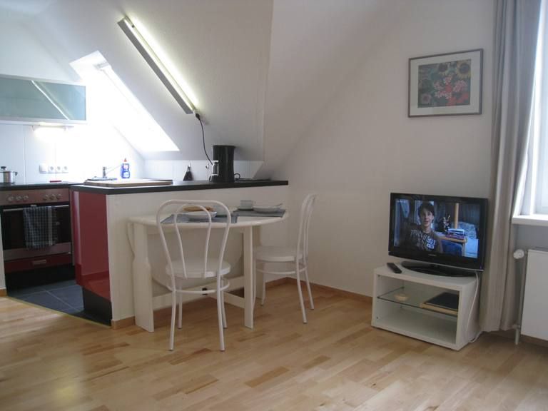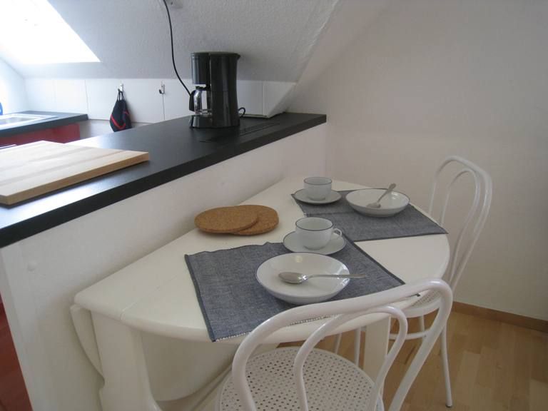 Die Wohnung ist durchdacht ausgestattet und bietet Ihnen alle Annehmlichkeiten, die Sie für einen komfortablen Aufenthalt benötigen. Der offene Küchenbereich mit einer voll ausgestatteten Küche umfasst einen modernen Cerankochfeldherd, einen Elektrobackofen, eine Geschirrspülmaschine sowie ein Kühlschrank mit Gefrierfach. Küchenutensilien, Geschirr und Besteck sind ebenfalls vorhanden, sodass Sie sich kulinarisch verwöhnen können. In einem separaten Bereich finden Sie einen Esstisch, an dem Sie die gemeinsamen Mahlzeiten in geselliger Runde genießen können.