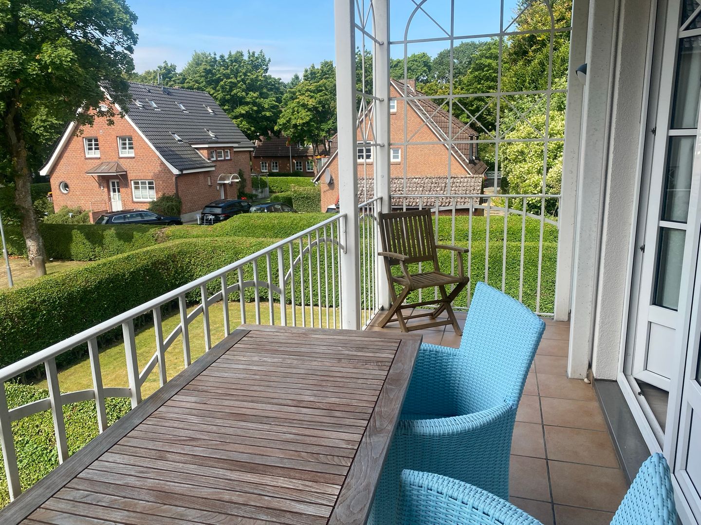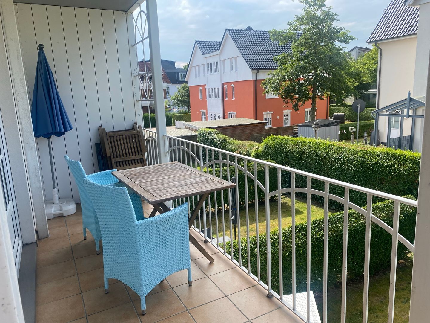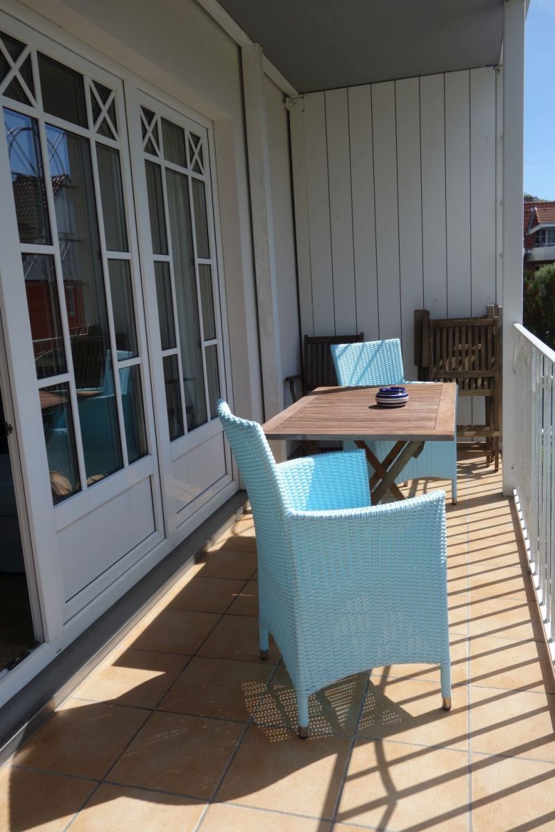 Der eigene Balkon ist mit Gartenmöbeln ausgestattet und bietet Platz für entspannte Stunden im Freien – ideal, um die frische Nordseeluft zu genießen oder den Tag ruhig ausklingen zu lassen.