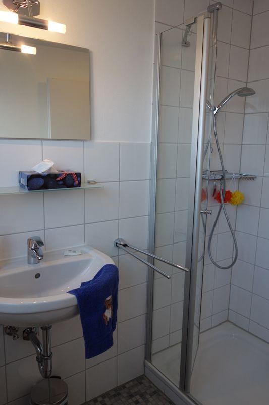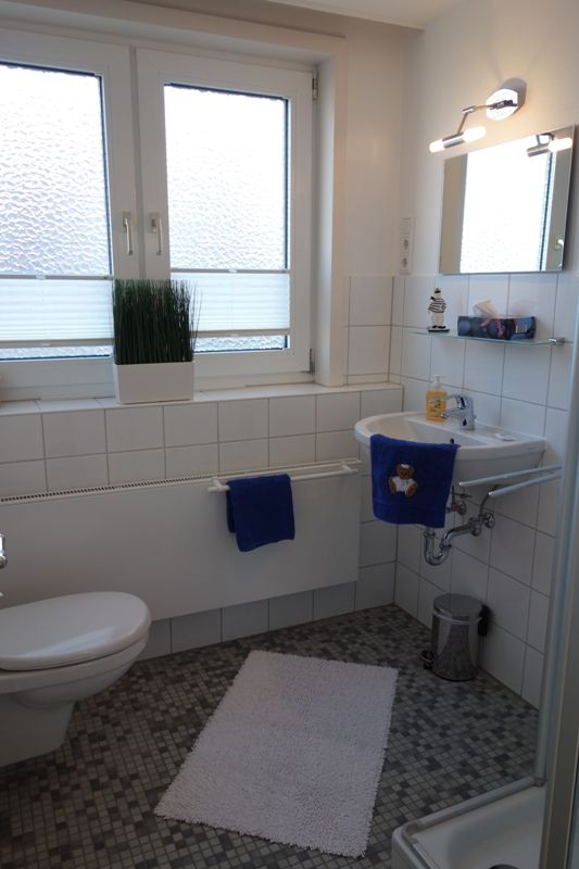 Das moderne Duschbad mit Fenster sorgt für zusätzlichen Komfort.