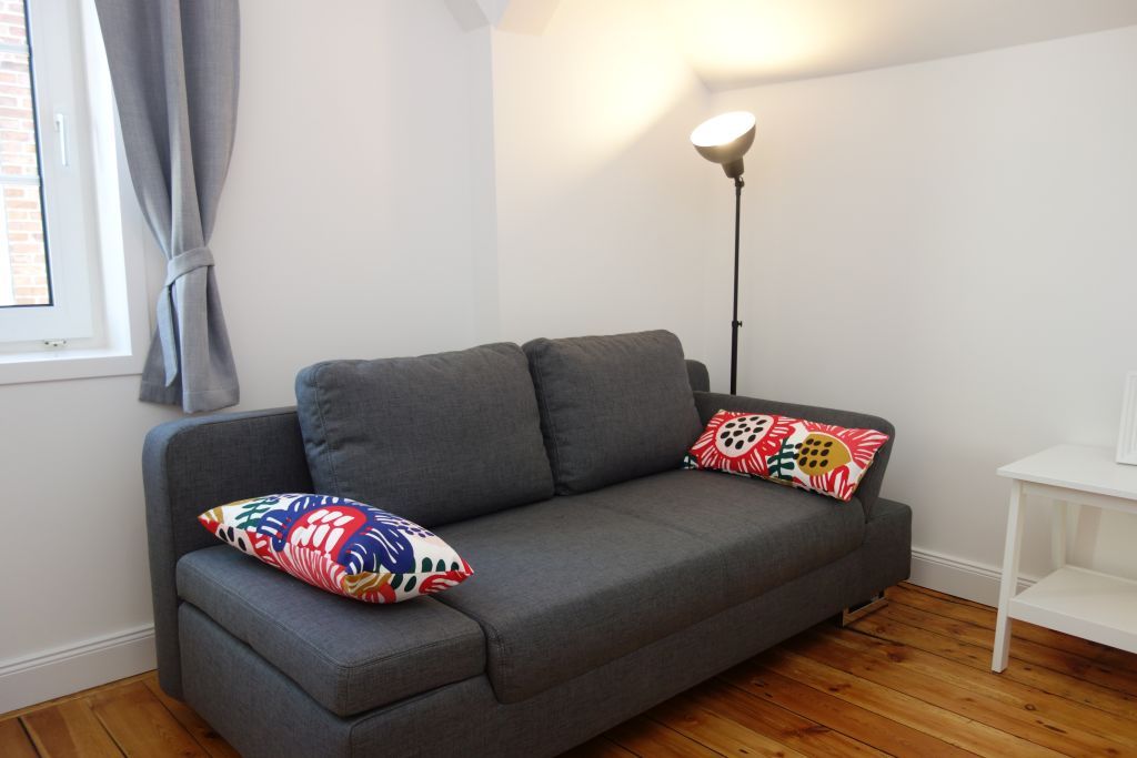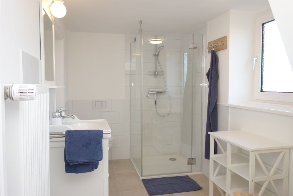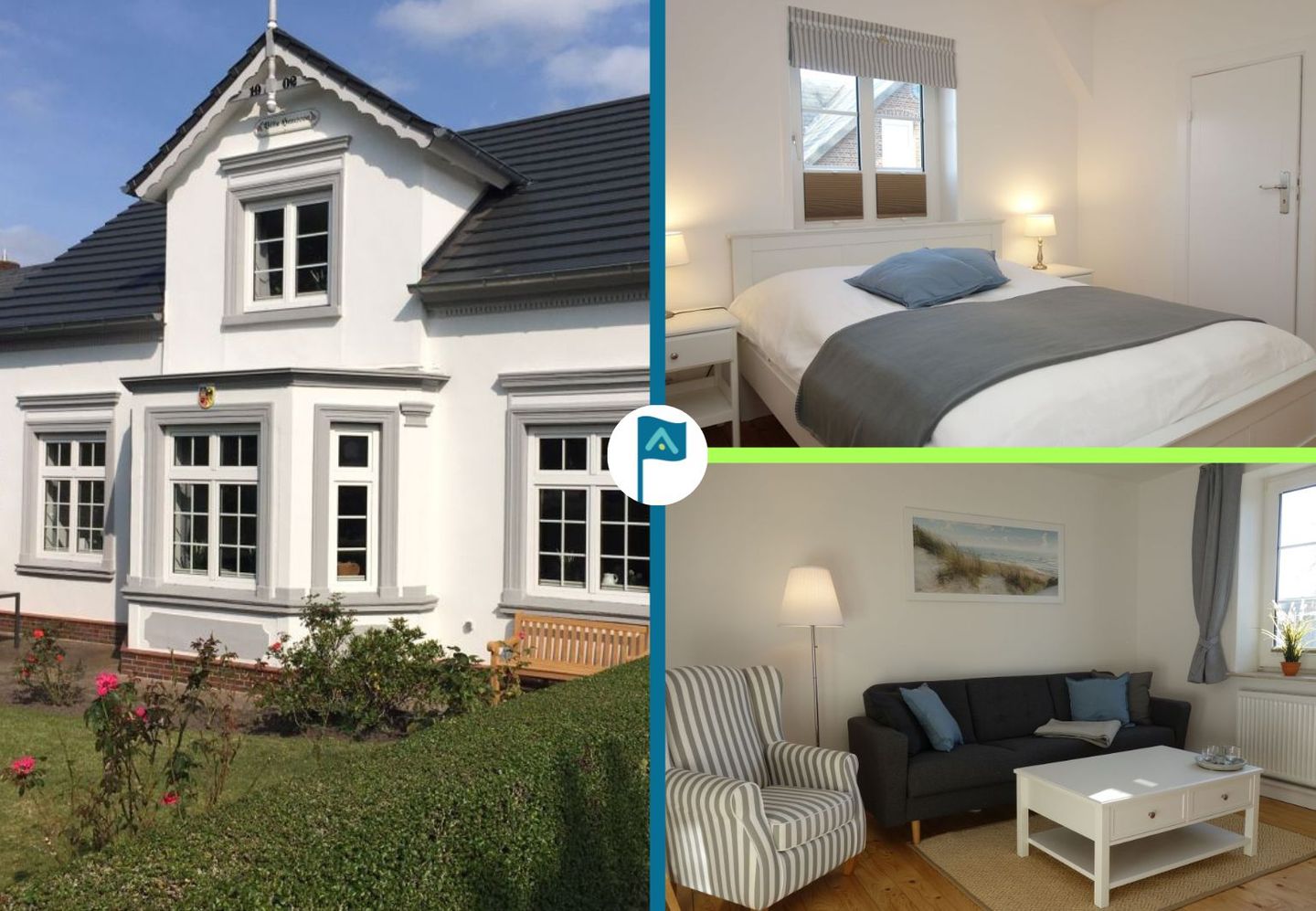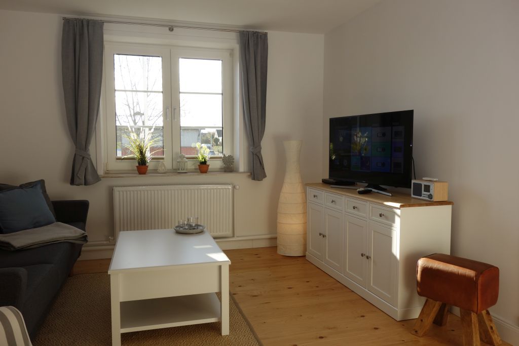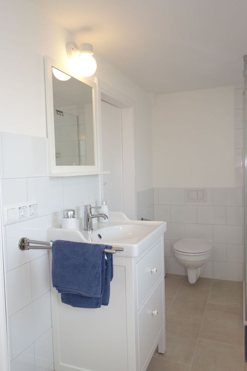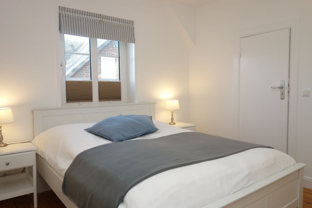 Die Villa beherbergt zwei Wohneinheiten, darunter die gemütliche Obergeschoss-Wohnung, die Platz für bis zu drei Personen bietet. Helle Farben, natürliche Materialien und eine stilvolle Einrichtung schaffen eine einladende Atmosphäre. Die Wohnung verfügt über ein komfortables Wohnzimmer, eine kompakte, aber gut ausgestattete Küche, zwei behagliche Schlafzimmer, ein großzügiges Duschbad und einen einladenden Flur.